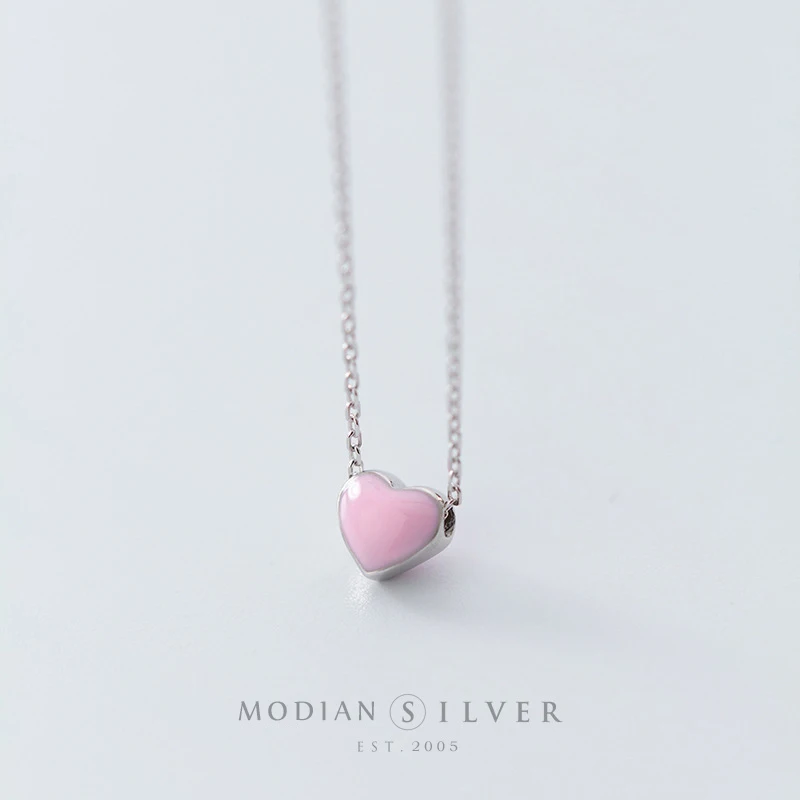 17 reviews for Modian Real 925 Sterling Silver Red Pink Green Enamel Hearts Pendant Necklace fo …