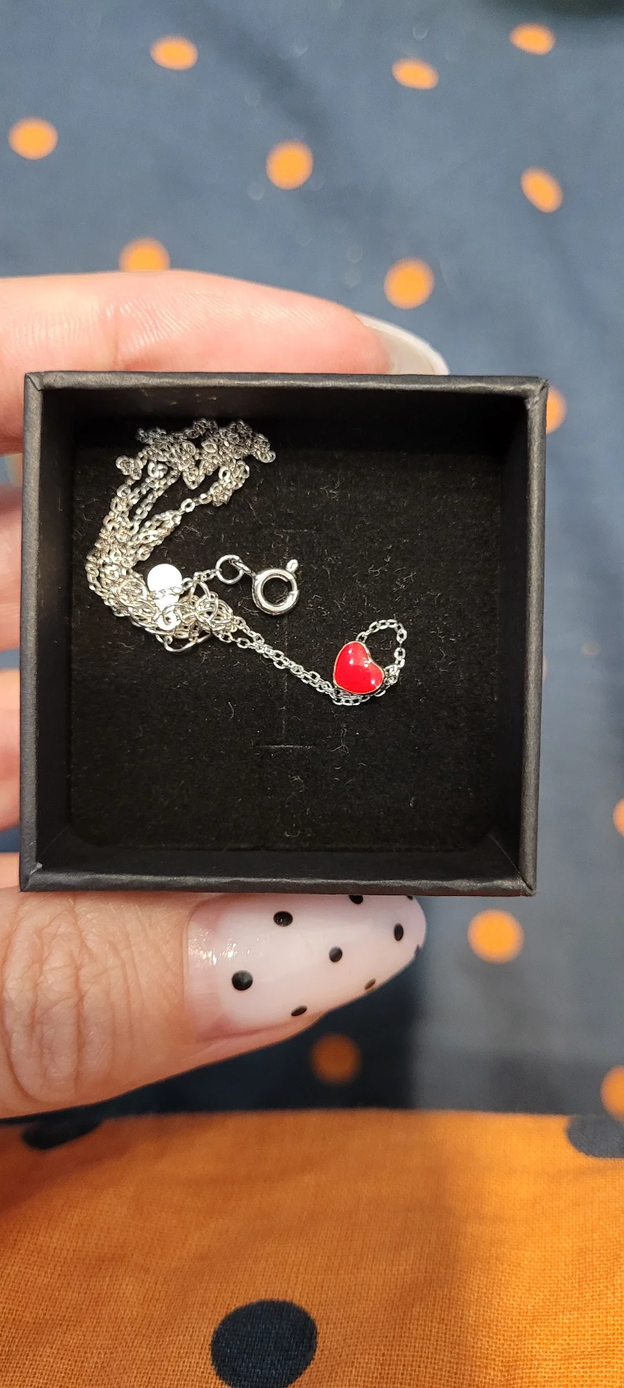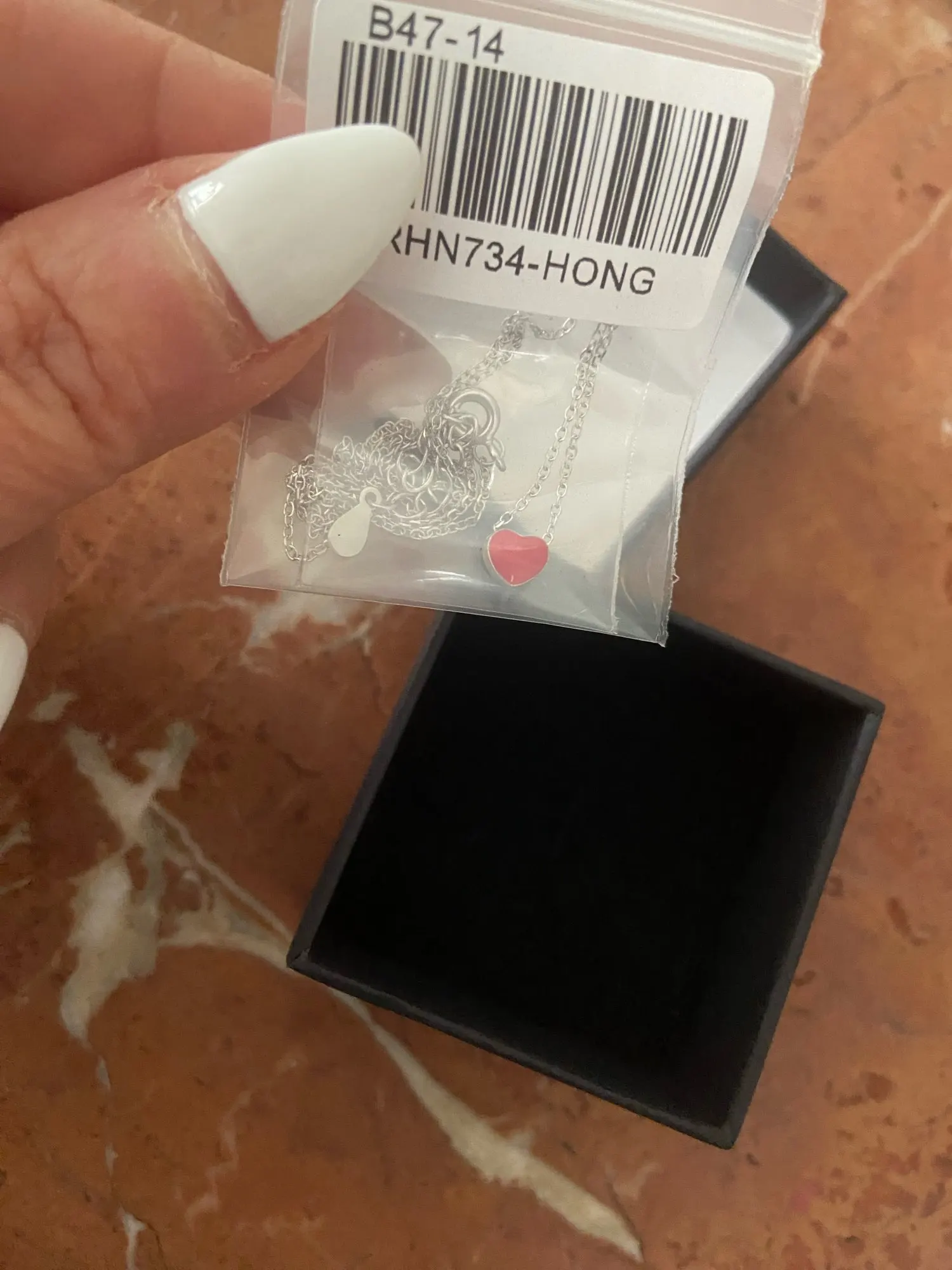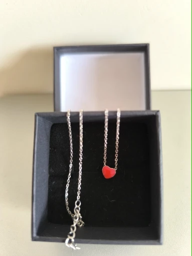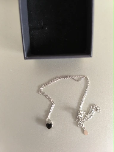 Замовлення прийшло за 13 днів. Мініатюрний кулончик, дуже мила прикраса. Колір сердечка на зворотній стороні – чорний. Все сподобалось, я задоволена.