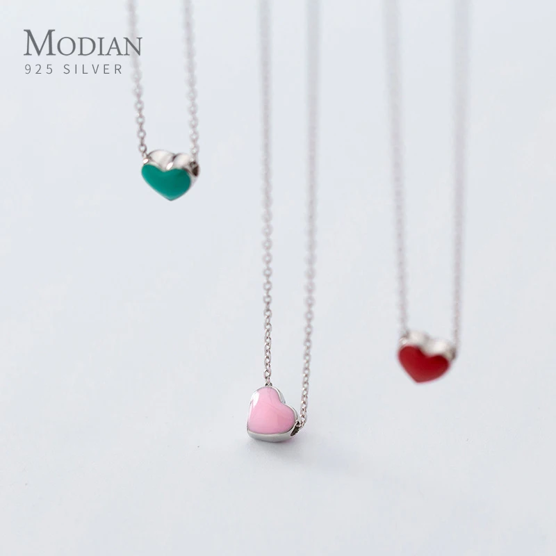 Modian Real 925 Sterling Silver Red Pink Green Enamel Hearts Pendant Necklace fo …
