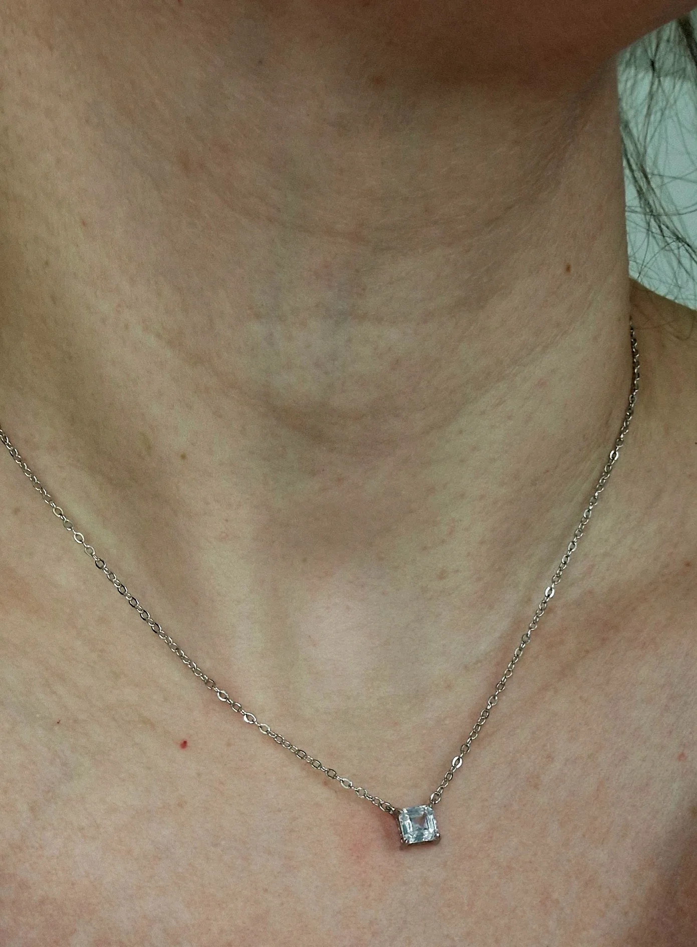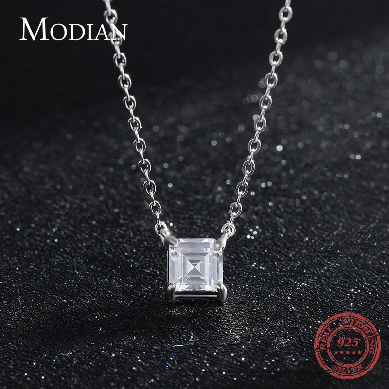 12 reviews for Modian Real 925 Sterling Silver Square Emerald cut Clear CZ Classic Necklace Pen …