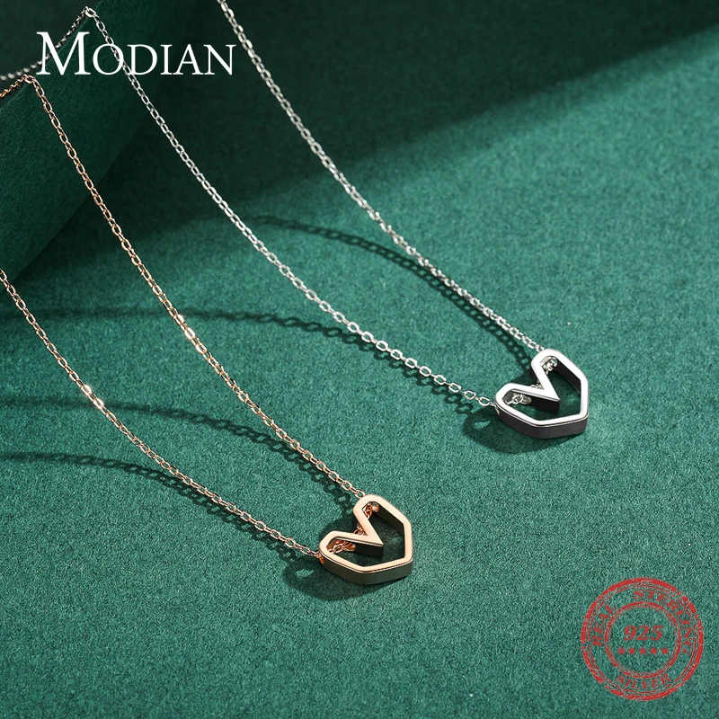Modian Silver Line Heart Pendant Real 925 Sterling Silver Rose Gold Color Love N …