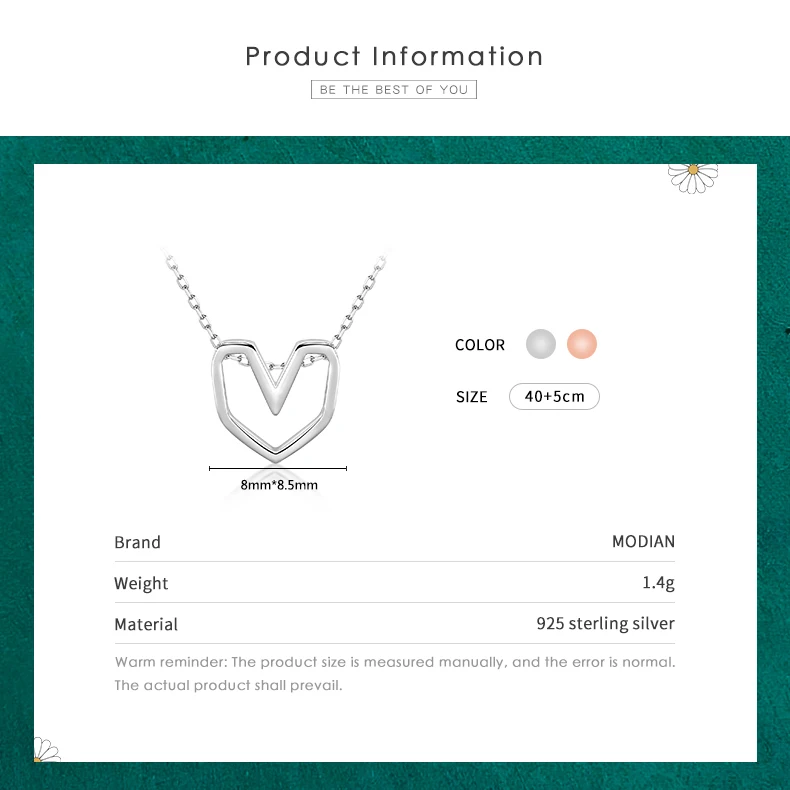 3 reviews for Modian Silver Line Heart Pendant Real 925 Sterling Silver Rose Gold Color Love N …
