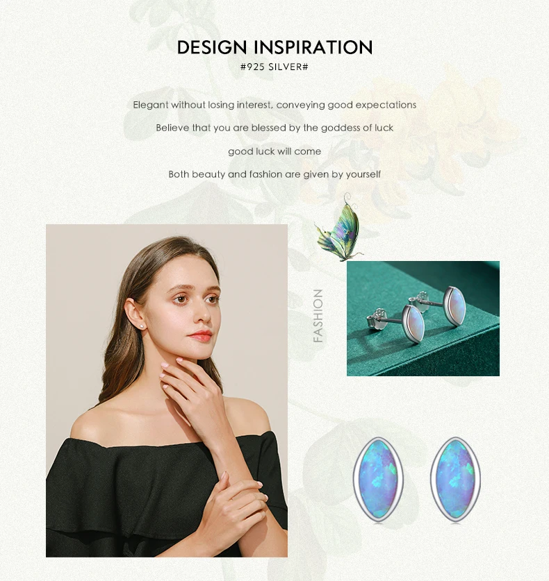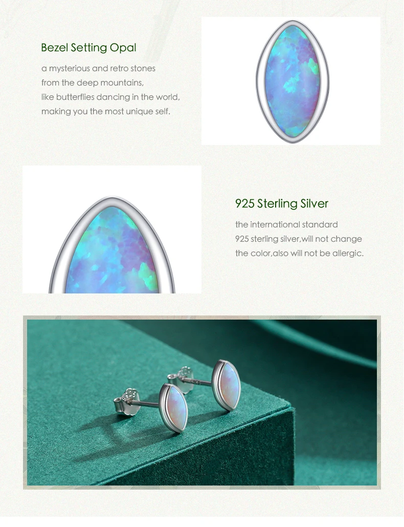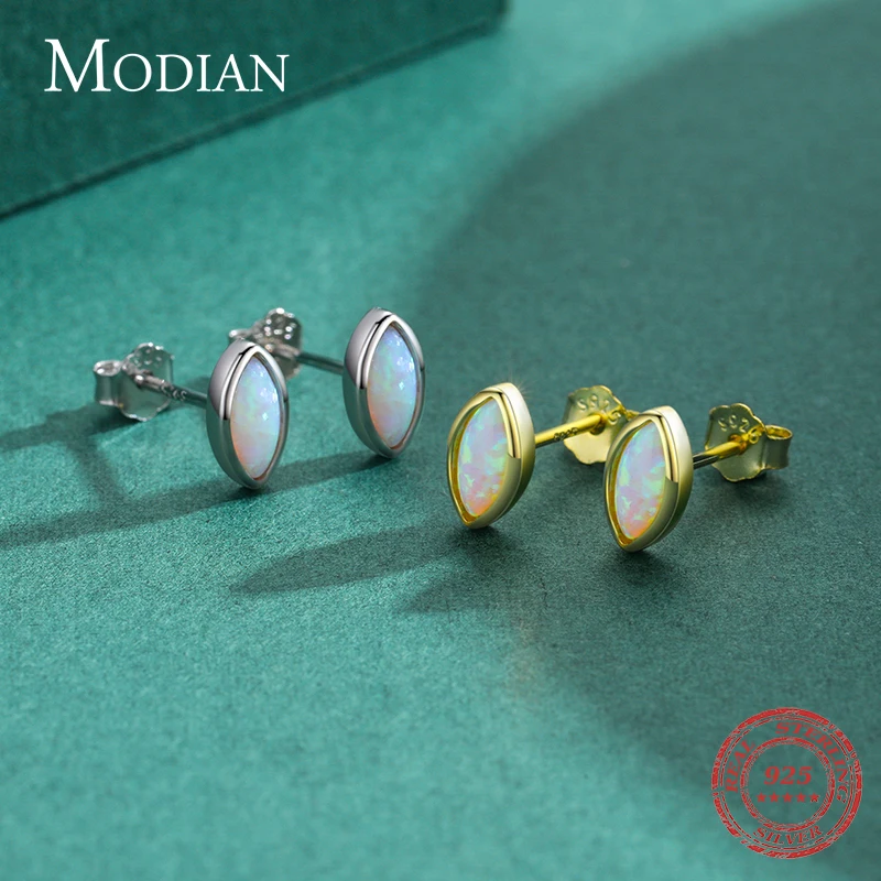 MODIAN Solid 925 Sterling Silver Charm Rhombus Natural Opal Stud Earrings For Wo …