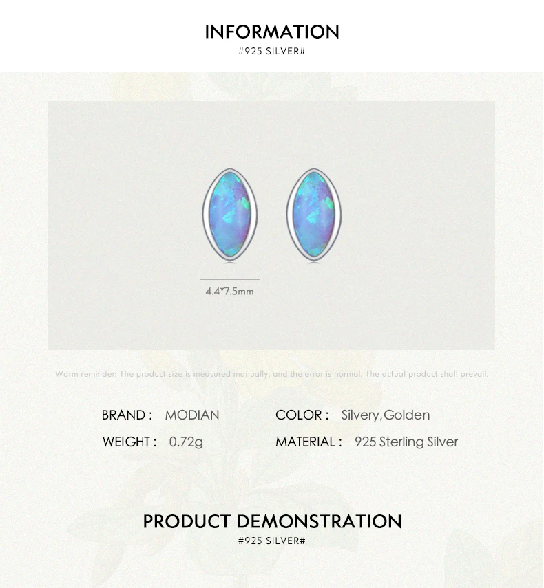1 review for MODIAN Solid 925 Sterling Silver Charm Rhombus Natural Opal Stud Earrings For Wo …