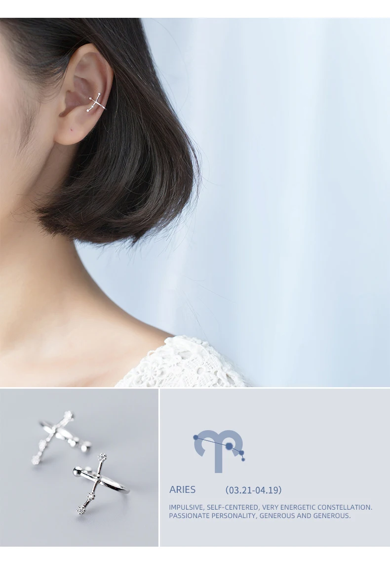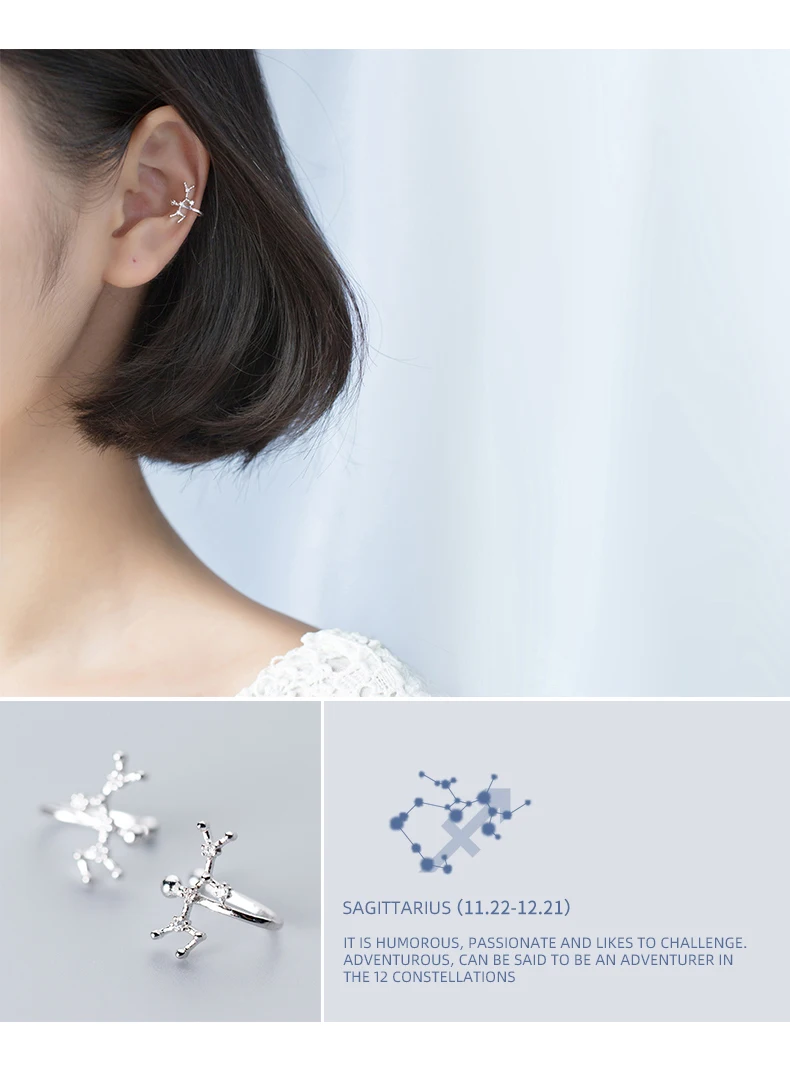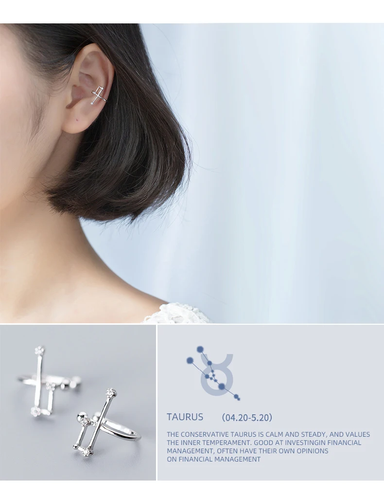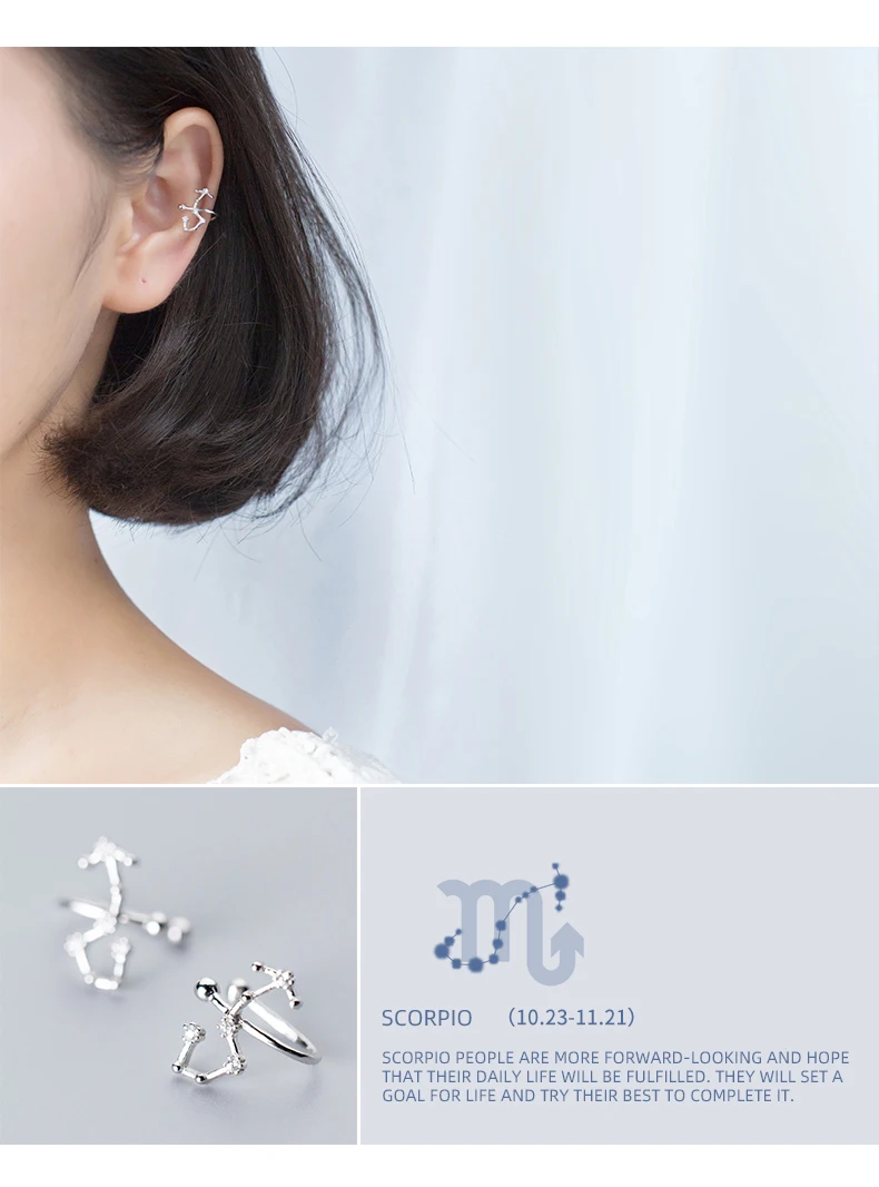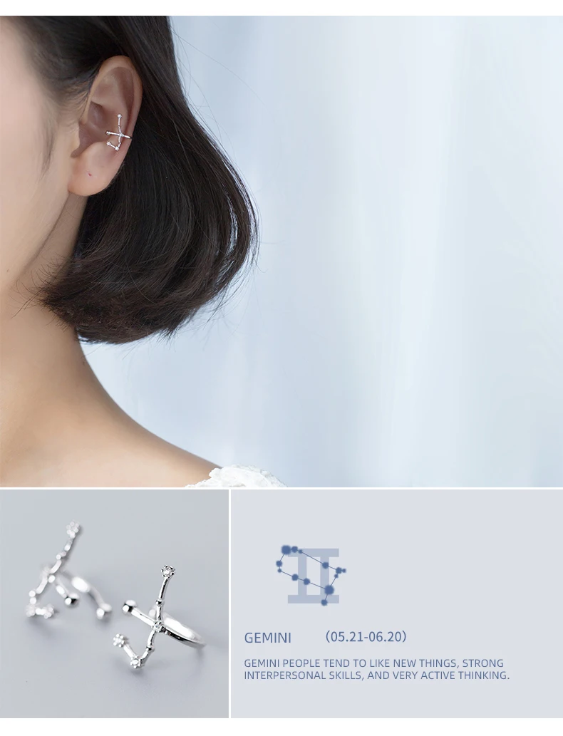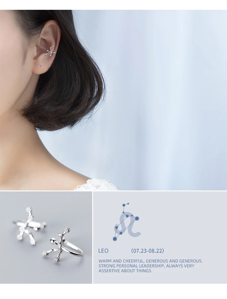 Modian Twelve constellations Simple Charm Clip Earrings 100% 925 Sterling Silver …