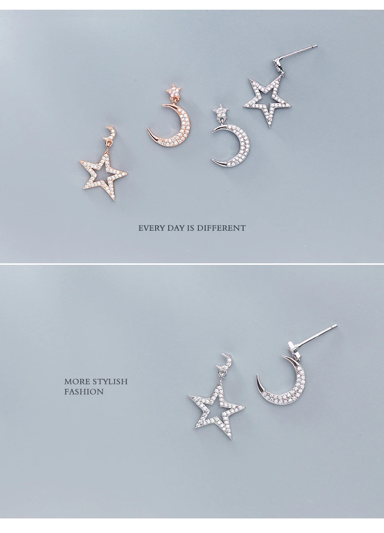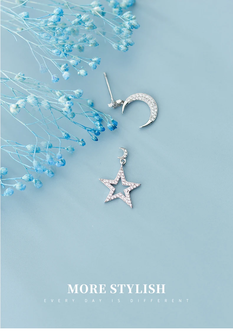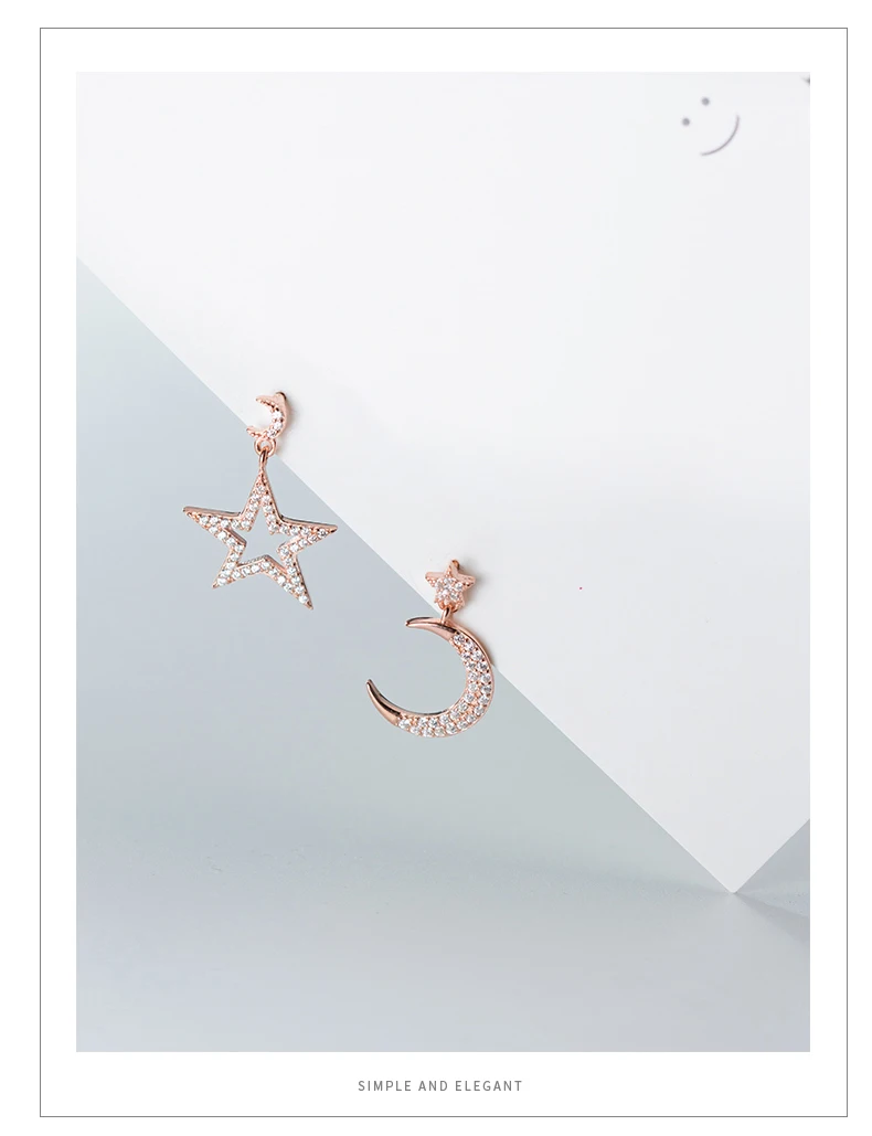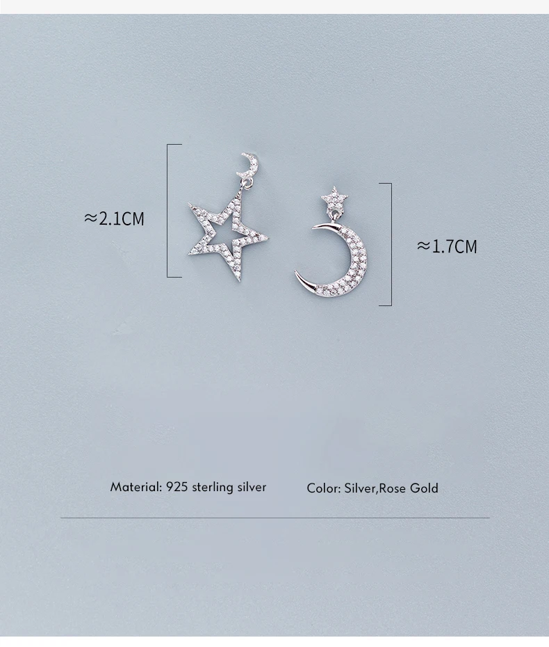 MODIAN Twinkle Zircon Star Moon Asymmetry Dangle Earring for Women 925 Sterling …