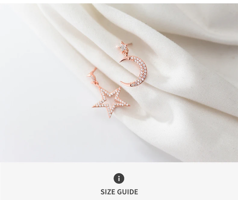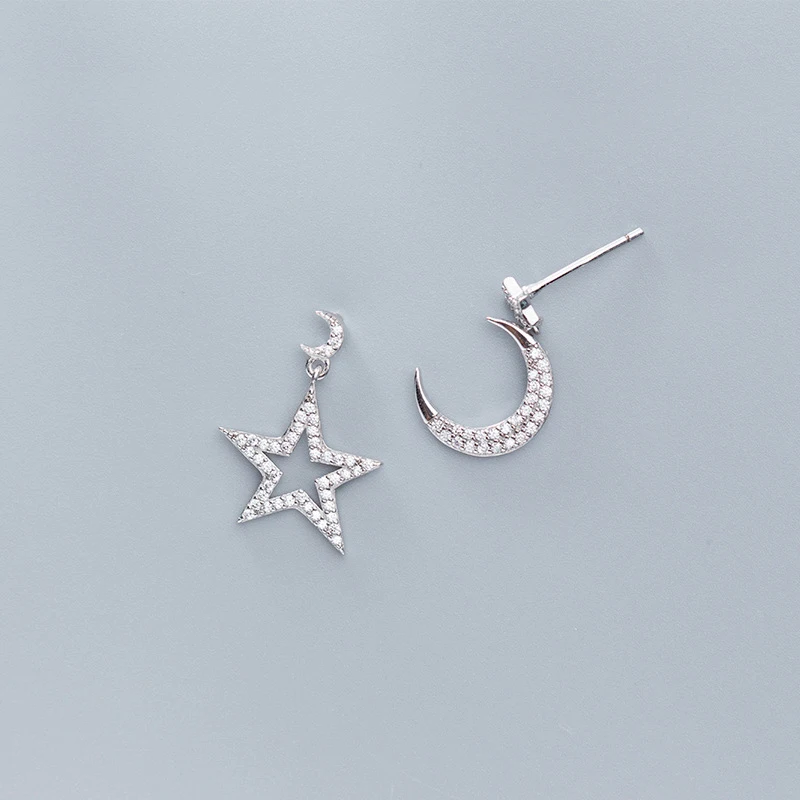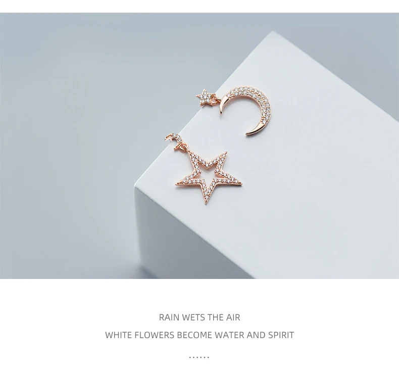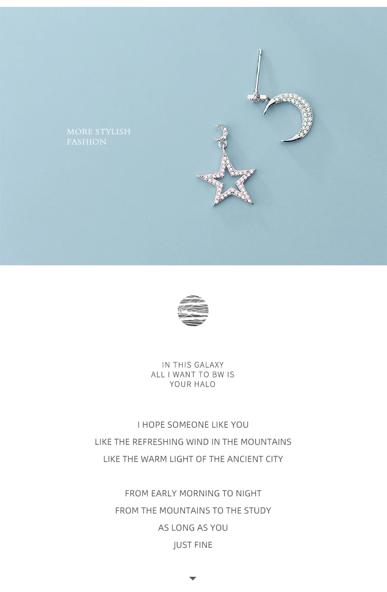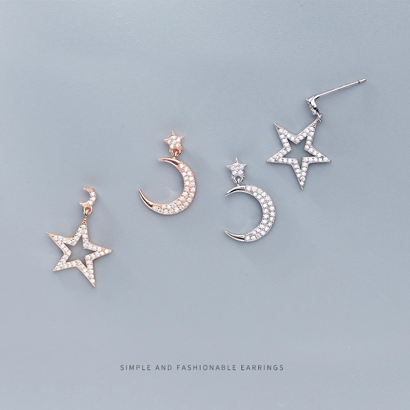 MODIAN Twinkle Zircon Star Moon Asymmetry Dangle Earring for Women 925 Sterling …