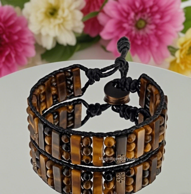 Handcrafted with genuine tiger’s eye stones, this masculine bracelet combines spiritual grounding with rugged style. The *8-inch adjustable leather band* ensures a perfect fit for most wrists, making it an ideal gift for: