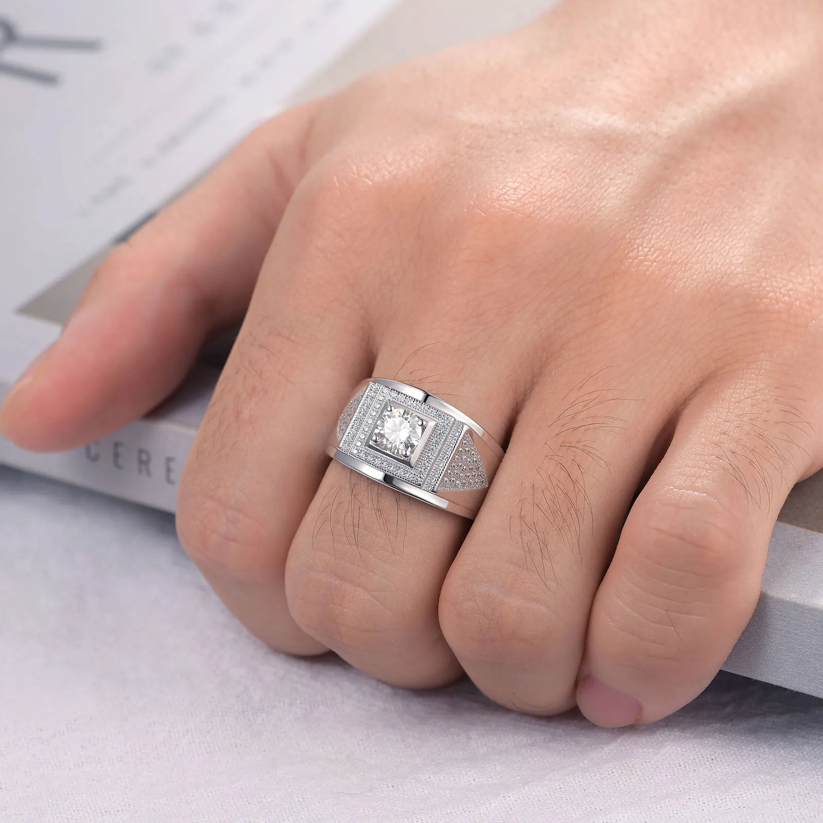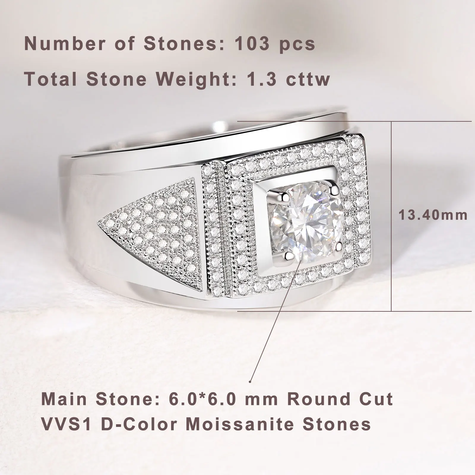 This men’s wedding band is made of 925 sterling sliver and the main stone is high-quality moissanite stone that are known for their brilliance and fire.