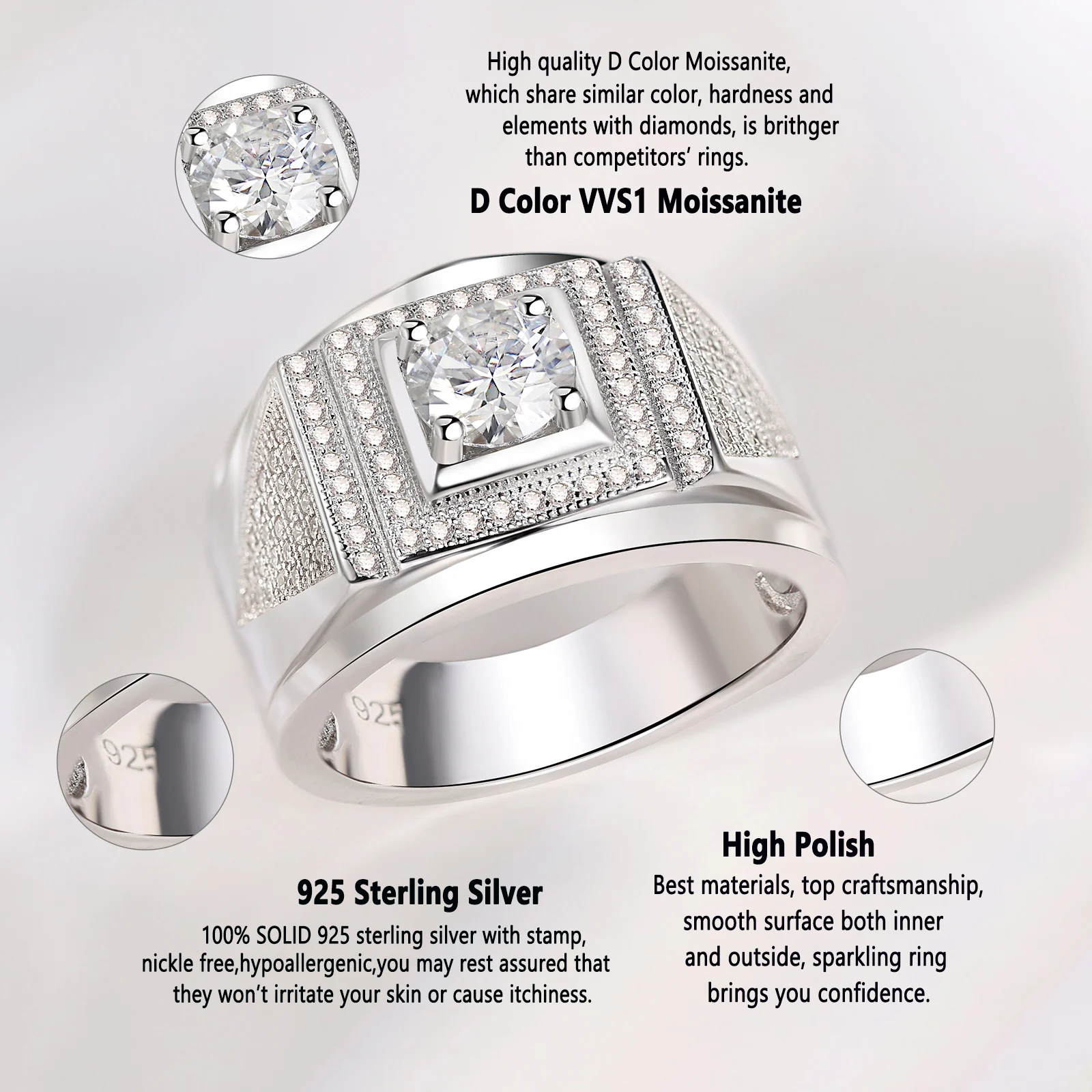 This men’s Moissanite engagement wedding ring is a lovely gift for your husband, boyfriend, lover, father, friends and families on special occasions like Birthday, Anniversary, Father’s Day, Valentine’s Day,Thanksgiving and Christmas!