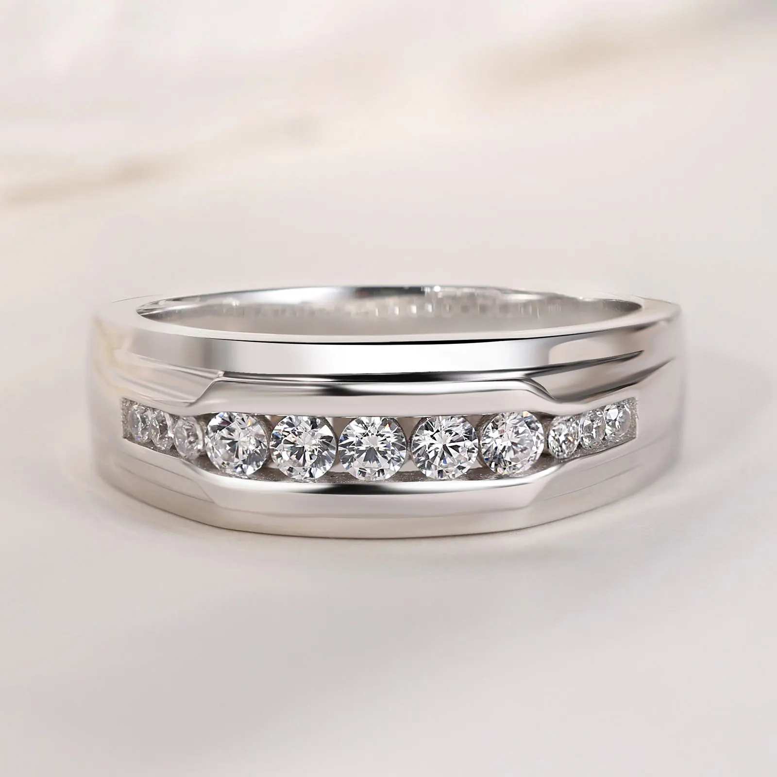 ♥Crafted with Precision♥ Our Round-cut wedding band for men features a main stone size 2.7*2.7 mm with total weight of 0.6 CTTW, made from 925 sterling silver.