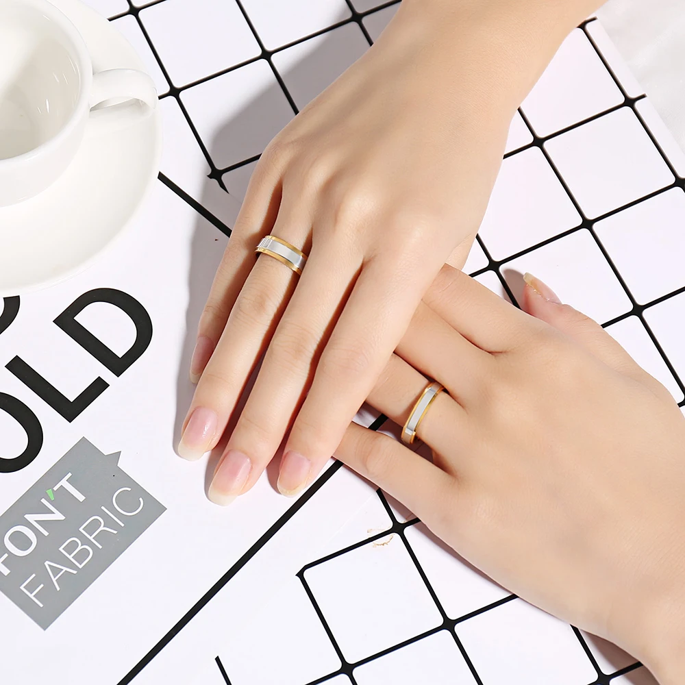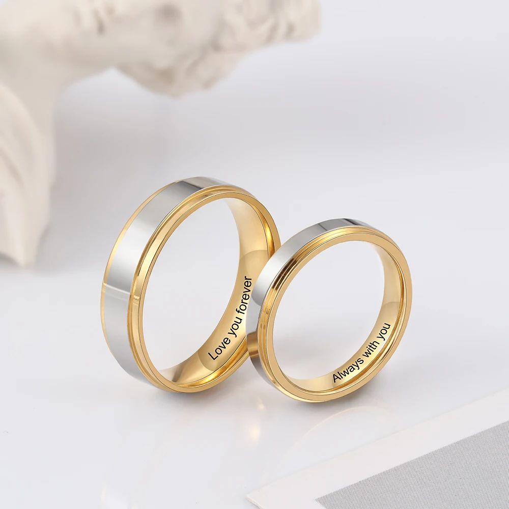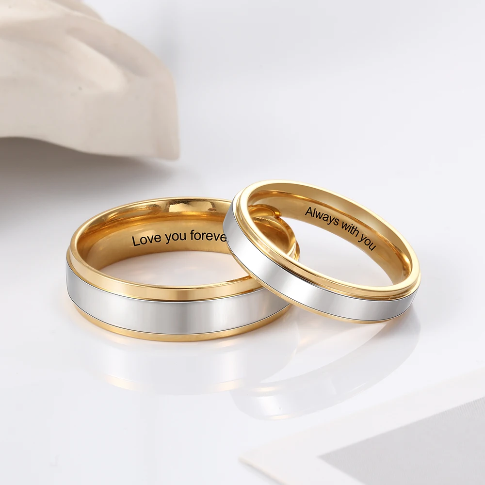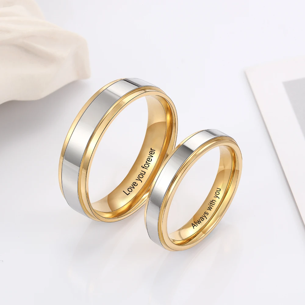 Personalized Jewelry Gold-color Stainless Steel Couple Rings for Women Men Custo …