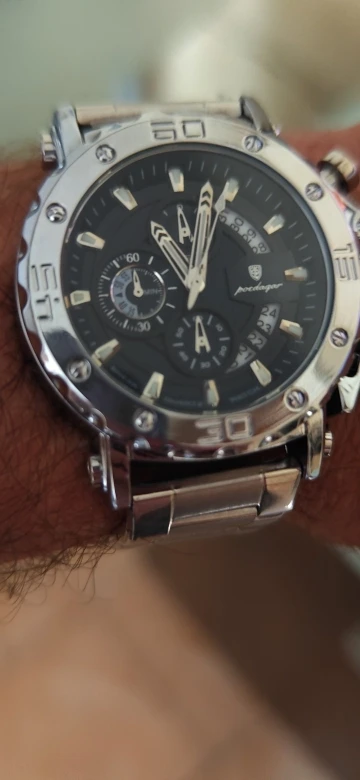 très belle montre lourde imposent petit poignet à éviter parfait pour moi vendeur sérieux livraison rapide je recommande vivement a 💯% merci