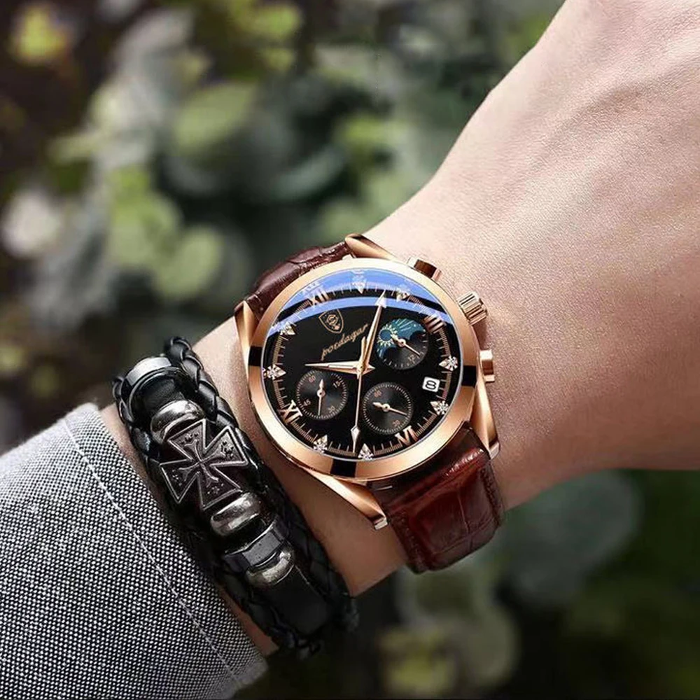 POEDAGAR New Fashion Men Watch Top Brand Luxury Men’s Leather Quartz Wrist …