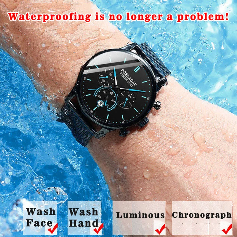 6 reviews for Poedagar Ultra Thin Mesh Belt Mens Watches Sports Chronograph Waterproof Luminou …