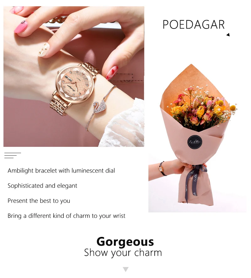 3.Watchband leather use high quality material,comfortable to wear,Push Button Hidden Clasp style.