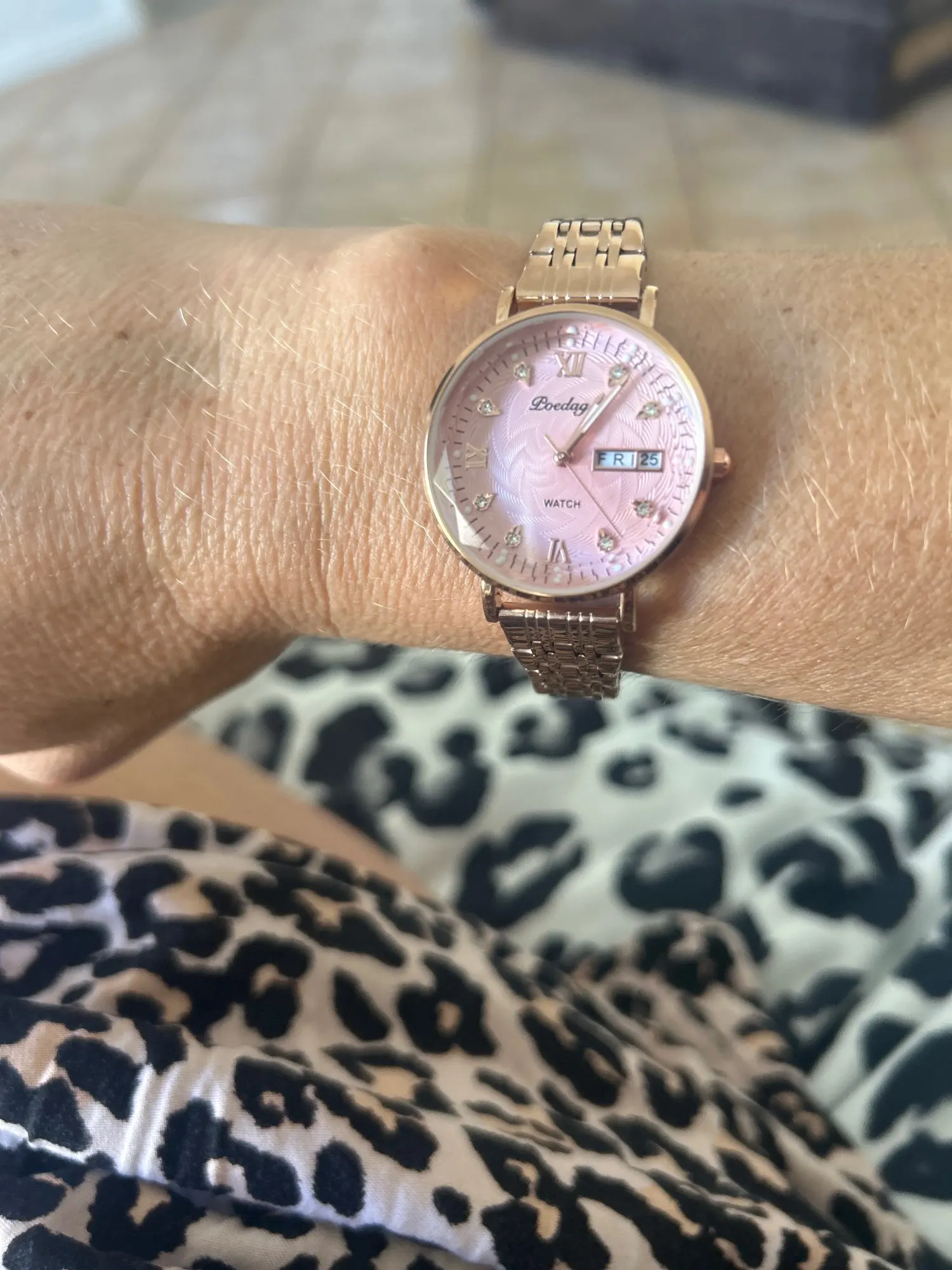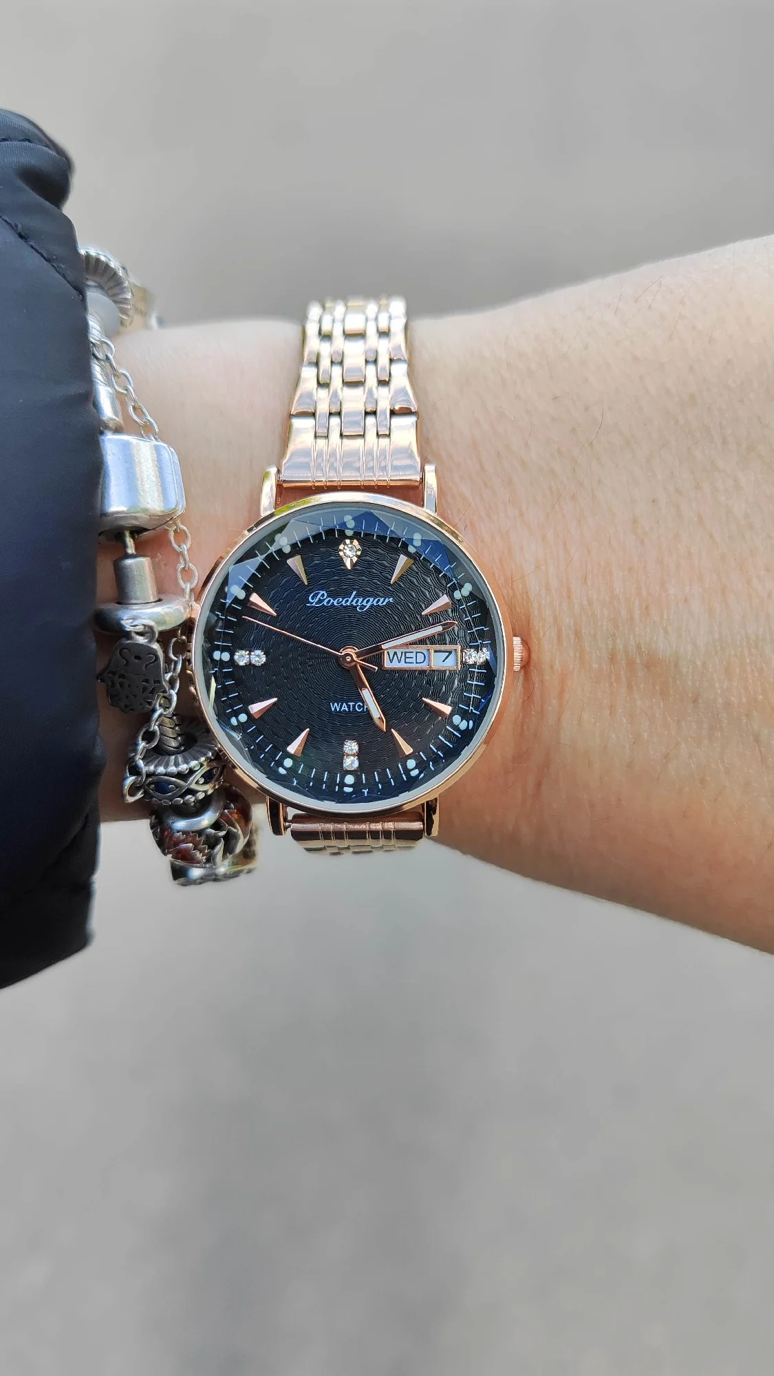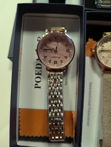 красивые часы,хороший размер даты и циферблата,все настроила, удалила одно звено браслета под себя- устройство для снятия звеньев было в посылке.. доставка в РБ чуть более 2 недель. спасибо продавцу. это вторые часики данного бренда.