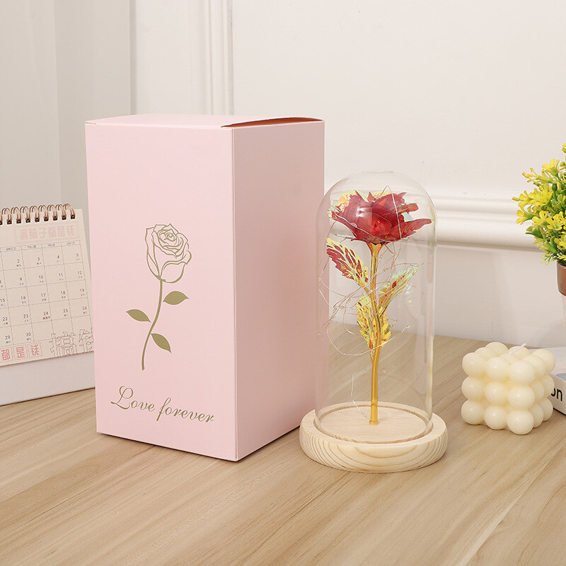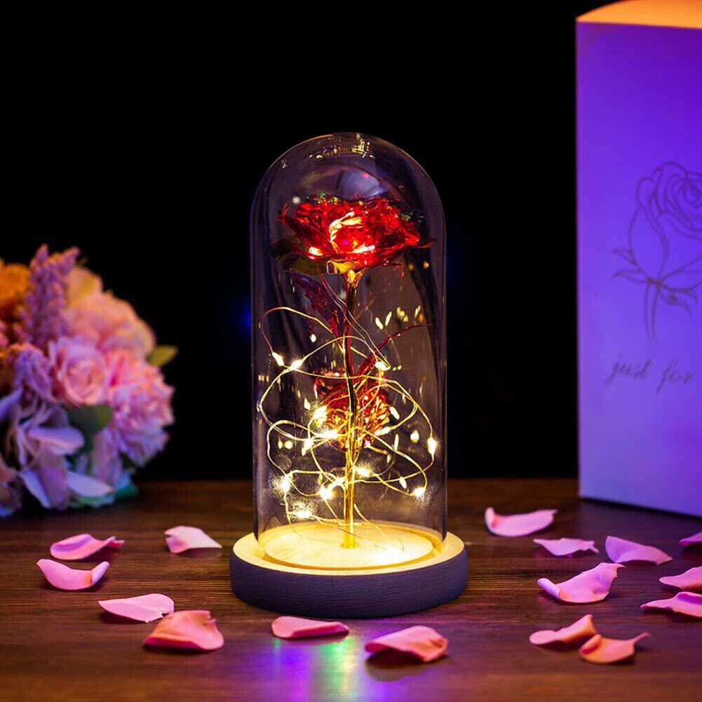 Rainbow Rose In Glass Crystal Flower Dome Rose LED Light Up Rose Valentine’s Day