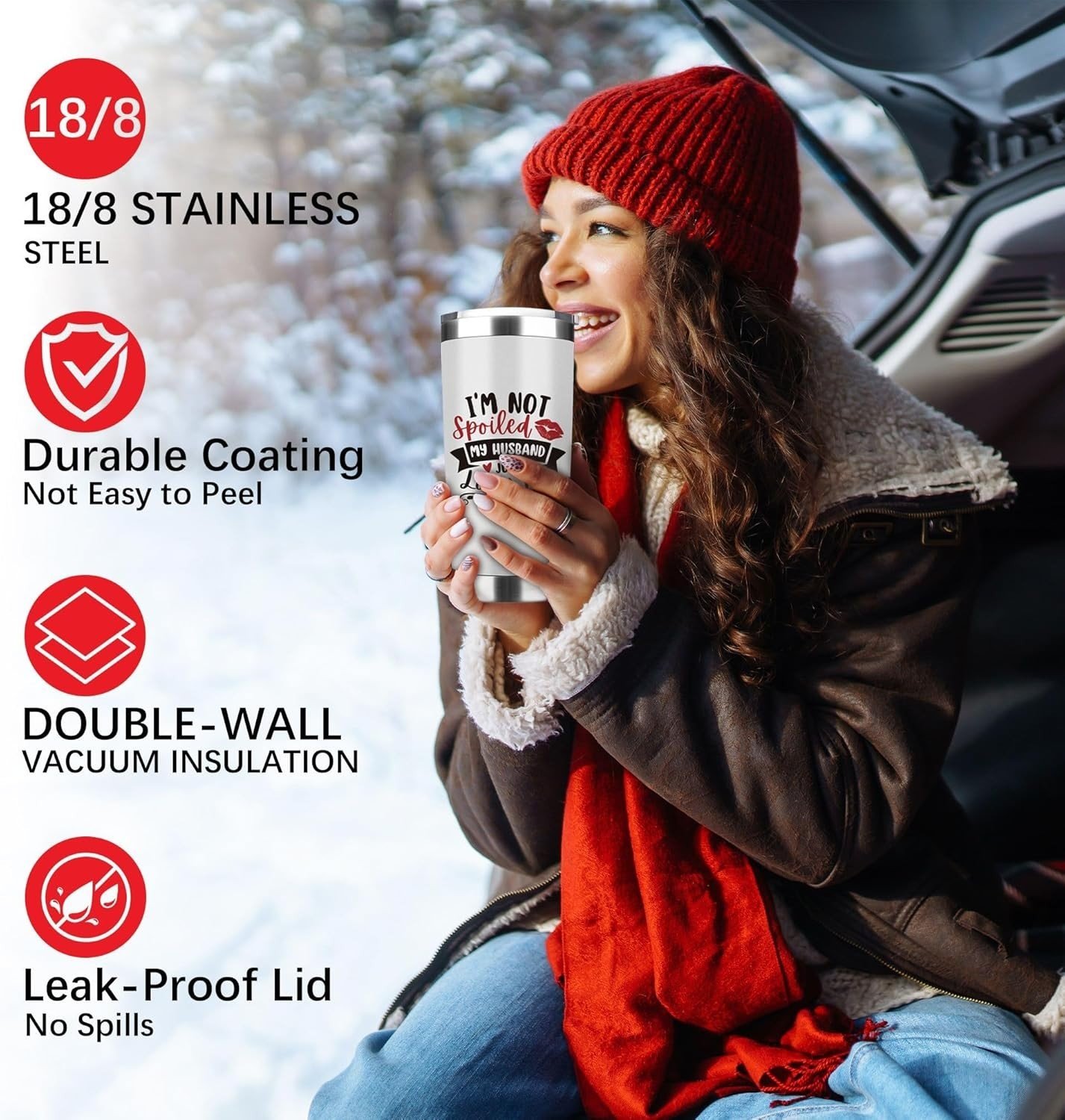 - Premium Quality – This stainless steel tumbler, made from 304 food-grade stainless steel, is eco-friendly and toxin-free. Its rust-proof, corrosion-resistant, and highly durable design ensures it will accompany your wife for years to come. The leak-proof lid adds worry-free convenience, making it perfect for everyday use. Combining both style and function, this tumbler for wife is the ideal way to express your love and gratitude